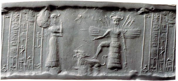 Aquí nuevamente Ishtar (Ashtarte) con la estrella de 8 puntas y el león.